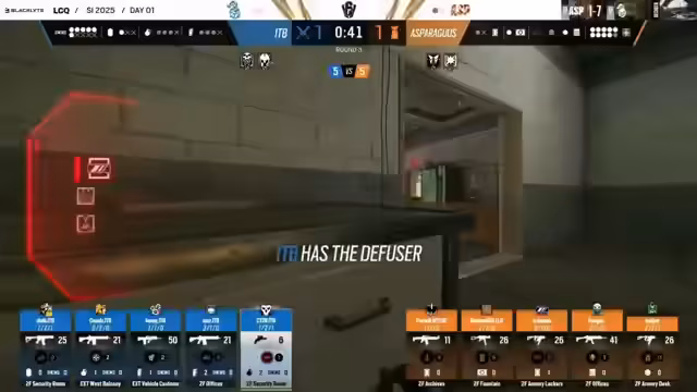 00:39:14Into the Breach startet mit einer defensiven Strategie auf Kaffee, wobei sie eine starke Position im Shop aufbauen. Der Runout-Versuch mit dem Oryx bringt jedoch nicht den gewünschten Erfolg. Asparagus gleicht aus, aber Into the Breach kann die erste Runde für sich entscheiden. Asparagus wählt einen horizontalen Go im Kitchen-Bereich und überrascht Into the Breach. Das Team spielt die Utility gut aus und gewinnt die Runde. In der dritten Runde versucht Into the Breach erneut einen Runout, der aber gestoppt wird. Asparagus nutzt die Fehler von Into the Breach aus und gewinnt die Runde. Asparagus fährt ihr traditionelles Line-Up und setzt Grimm gut ein. Into the Breach fokussiert sich auf Red Stairs und Piano, während Asparagus von der Cocktailseite Druck macht. Asparagus lernt aus den Fehlern und gewinnt die Runde. Into the Breach versucht es mit einem Run-Out, der aber nicht zustande kommt. Asparagus nimmt Stocktail ein und spielt die Side in Fireplace und Library. Die Teams liefern sich ein spannendes Match auf der Map.