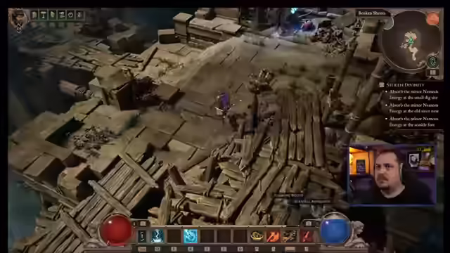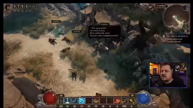 01:09:08Es werden verschiedene Ausrüstungsgegenstände begutachtet, darunter ein Dolch mit Gift- und Blitzschaden, wobei der Blitzschaden als vorteilhafter für die aktuellen Fähigkeiten eingeschätzt wird. Ein goldener Ring mit Zauberschaden wird gegen einen anderen ausgetauscht. Es wird die mediterrane Umgebung des Spiels gelobt, die an Lieblingsgriechen erinnert. Anschließend werden diverse Gegenstände verkauft, was das Dinarii-Konto auf 64.000 erhöht. Die britischen Synchronsprecher fallen aufgrund ihrer häufigen Verwendung in Spielen seit dem US-Streik auf, wobei die Stimme von Glaukos als unpassend zum Körper empfunden wird, möglicherweise aufgrund persönlicher Stereotypen gegenüber amphibischen Monstern. Es wird eine Prophezeiung gefunden, die von einem Vater von Fischmenschen und dem Versuch handelt, ein Land vor frommen Piraten zu bewahren.