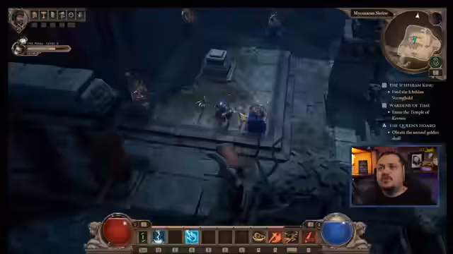 01:09:34Der Streamer experimentiert mit dem Inventar, tauscht einen goldenen Ring für einen besseren Spell Damage Ring und verkauft Gegenstände für 64.000 Dinarii. Die griechisch inspirierte Atmosphäre wird als positiv empfunden. Es werden technische Probleme wie FPS-Drop nach dem Update angesprochen und Build-Optionen für einen Kämpfer mit Blitz-ähnlichen Fähigkeiten getestet. Die Schwierigkeit wird auf Hardcore erhöht, um den neuen Content zu meistern.