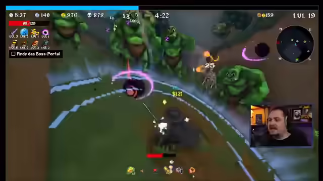05:15:12Der Streamer äußert sich begeistert über das Spiel und scherzt, dass seine Frau mittlerweile mehr über das Spiel weiß als über ihn. Er hadert mit den vorhandenen Waffen und betont die Notwendigkeit, diese zu verbessern. Er spricht über das 'Main-Character-Syndrom' im Spiel und bedauert einen missglückten Run. Der Fokus liegt darauf, schneller Aura aufzubauen und er erwägt, Katana zu vernachlässigen, um Aura zu priorisieren. Er erwähnt, dass bis Minute sieben die Aura erreicht sein sollte, um den Boss zu besiegen. Er vergleicht das Spiel mit 'Deadly Days', das er jedoch bereits totgespielt hat. Er erklärt, dass er fast alle Erfolge erreicht hat. Er nimmt Projektile dazu, obwohl er etwas anderes wollte und es hätte verbannen müssen. Er erklärt, dass das Spiel wie Vampire Survivor ist und man nur die Kamera und den Charakter steuern muss. Er nimmt Goldzuwachs und eine Chance auf Raketen beim Töten von Gegnern mit. Trotzdem fehlt die Aura und er betont, dass Aura AOE-Damage macht und das Clearen erleichtert. Er erklärt, dass er lieber langsam die Schwierigkeit hochsetzt und jeder Run AMG-gesteuert ist. Er versucht, auf Highscore-Runs zu gehen und die Aura mit Knoblauch in Vampire Survivor vergleicht.