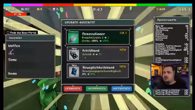 04:44:26Nachdem der Streamer kurzzeitig mit technischen Problemen zu kämpfen hatte, wechselt er das Spiel zu Megabonk. Er äußert seine große Begeisterung für das Spiel und möchte einen spezifischen Build ausprobieren, um sich auf eine Win-Challenge am Sonntag vorzubereiten. Er beschreibt Megabonk als ein Vampire Survivor-like in 3D, bei dem man Wellen überleben und Schreine einsammeln muss, um immer stärker zu werden.
