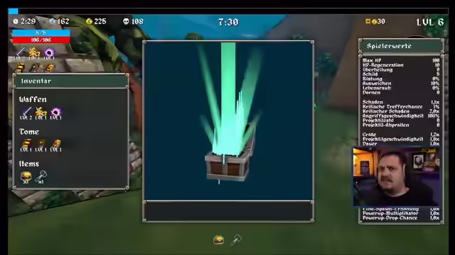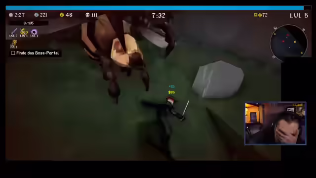 05:53:32Nach einem Neustart aufgrund eines schlechten Spawns wird die Wette, ob Stage 1 geschafft wird, fortgesetzt. Der Streamer erklärt, dass es durch die zufällige Generierung des Spiels wichtig ist, einen guten Startpunkt zu haben. Er freut sich über den Erhalt einer Aura und bezeichnet dies als 'den Run'. Er nimmt fünf Schilde mit und erklärt, dass er nach ganz oben will. Er erklärt, dass man Quest absolvieren muss, um Tome- und Waffenplätze freizuschalten. Er startet eine neue Wette, ob Stage 1 geschafft wird. Er nimmt muffigen Käse mit und erklärt, dass er jetzt mal Glück verdient hätte. Er erklärt, dass er sich verdrückt hat und einen Neustart macht, der aber nicht als Tod zählt. Er erklärt, dass Damage wichtiger ist als Schaden und er eine krasse Aura hat. Er glaubt, dass dies der Run schlechthin werden könnte. Er pusht die Schwierigkeit und erklärt, dass Schwabbelus Grandus als erster Boss noch gut zu handhaben ist. Er farmt HP und erhöht sein Glück. Er erklärt, dass er nur Vorteile hat, wenn er kein Fluchband hat. Er nimmt einen Sprung mit und erklärt, dass jemand explizit dagegen ist, dass er gewinnt. Er nimmt einen mit, um sich hinterher zu heilen. Er erklärt, dass er ab 1000 Kills 100% mehr Schaden macht. Er erklärt, dass er einen Magnet bräuchte und dass der Run cursed ist. Er startet noch einen Run.