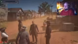 00:28:26Jakob äußert seine Begeisterung für Van Horn, obwohl er als Charakter dort gerade Schwierigkeiten hat. Er überlegt, einen Vogel zu jagen, um seinen guten Willen zu zeigen, und bemerkt eine Schießerei in der Stadt. Er erinnert sich nicht an den Namen desjenigen, der ihm die Waffe verkauft hat. Jakob stellt fest, dass sein Kaffee leer ist. Er schwärmt von den Interaktionen mit dem Sheriff und Luni und freut sich über seine Entscheidung, wieder RP zu spielen. Er erwähnt, dass Vitti auch RP spielen wollte. Jakob überlegt, dass sein Charakter nicht lange leben wird, da er vom Sheriff der Stadt verwiesen wurde. Er entschuldigt sich bei einem Pferd und stellt fest, dass seine Grafikeinstellungen nicht auf Ultra sind. Jakob plant, sich Freunde oder Feinde zu machen und findet, dass das RP gut angelaufen ist. Er wird von einer jungen Frau angesprochen, die sich nach dem Marktplatz und Empfehlungen für Saloon oder Pub erkundigt. Jakob schaut auf die Karte, um ihr zu helfen. Er wird von einem Mann angesprochen, der ihm für einen Dollar den Weg zum Pub zeigen will. Jakob erkennt ihn aus Blackwater wieder und erfährt, dass der Pub leicht zu finden ist. Jakob erzählt von seiner Begegnung in Van Horn, wo man ihn zu Gulasch machen wollte.