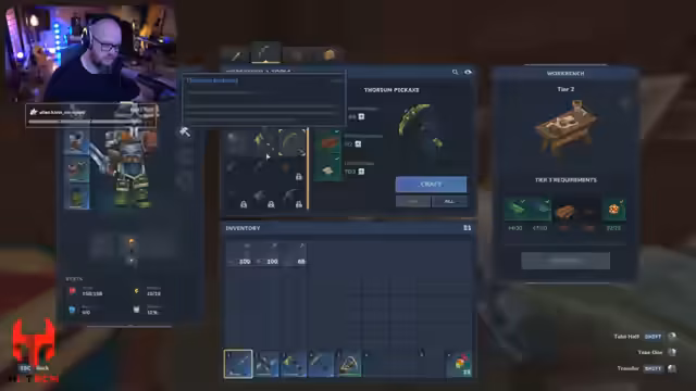 02:49:53Ab 10193 widmet sich der Streamer dem Aufbau einer Basis: Er stellt Werkzeuge her, fertigt Pfeile, kocht Fleisch auf Spießen und experimentiert mit verschiedenen Metallverbindungen wie Kobalt und Thorium. Dabei diskutiert er die Haltbarkeit von Spitzhacken, die Notwendigkeit von Upgrades und plant, welche Materialien für upcoming Structures am besten geeignet sind.