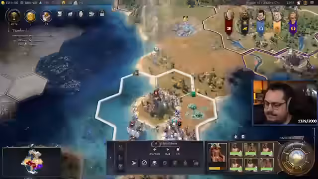 00:20:37Es wird ein Giveaway für Civilization 7 angekündigt, bei dem ein Zuschauer einen Key gewinnen kann, um das Spiel sofort zu spielen. Um teilzunehmen, soll man "!Ziff" in den Chat schreiben. Der Streamer kritisiert Advanced Access als eine Zweiklassengesellschaft, da es Spieler belohnt, die mehr Geld haben. Er räumt ein, dass er für das Spielen von Civilization 7 bezahlt wird, betont aber, dass dies seine ehrliche Meinung nicht beeinflusst. Aktuell können nur wenige Spieler das Spiel spielen, entweder weil sie Videos im Vorfeld konsumiert haben oder weil sie Hardcore-Fans sind. Das UI wird erneut kritisiert und der Streamer zeigt es anhand eines geladenen Spielstands. Er bemängelt, dass es nur drei Mapgrößen gibt und die größte Mapgröße zu klein ist. Das UI erinnere ihn an das von Harz of 1.4 in der Ursprungsversion, wo alles grau-beige gewesen sei. Normalerweise könne man leicht zum Controller wechseln, aber es gäbe gerade einen Vorführeffekt. Er schlägt vor, das UI farblich anzupassen, um eine bessere Unterscheidung zu ermöglichen. Der Streamer blendet die Diplomatie oben rechts aus, um mehr Platz zu schaffen. Er erklärt, dass das Color Coding aus Civ 6 fehle, was er nachvollziehen kann. Es wird erwähnt, dass man sich im Homeoffice zurücklehnen kann, während man auf der Arbeit nicht zu sehr zurücklehnen sollte. Der Cutter wird beauftragt, Unsinn im Video zu korrigieren.