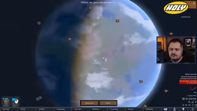 01:05:01Nachdem die grundlegende Organisation der Basis steht, muss nun ein geeigneter Landeplatz für das Grafschiff ausgewählt werden. Die Weltkarte wird analysiert und ein tropischer Regenwald als Zielort bestimmt. Die Gegend bietet gute Nahrungsquellen und Baumaterialien wie Granit und Eisen, birgt aber auch Risiken wie Krankheiten und gefährliche Tiere. Diese Wahl stellt die erste strategische Weiche für den weiteren Verlauf des Spiels und den Kampf gegen die verfolgenden Mechanoiden.