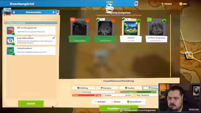 01:16:20Nachdem die technischen Schwierigkeiten kurzzeitig in den Hintergrund treten, wird die Spielmechanik des Exponatsammelns intensiviert. Das Spiel wird als sehr grindig empfunden, da das Team auf bestimmte, seltene Exponate wie das Ei im Bernstein warten muss. Es werden verschiedene Expeditionen gestartet, bei denen die Spieler mit Dilemmata wie extremen Temperaturen und notwendigen Reparaturen konfrontiert sind. Das Ziel bleibt das Freischalten neuer Inhalte und das Erreichen höherer Museumstufen, trotz der sich entwickelnden finanziellen Engpässe.