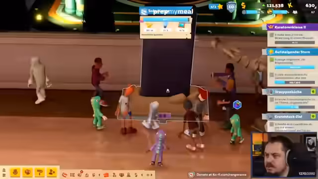 01:10:53Zu Beginn des Zeitraums wird das Spielgeschehen vom Chat mit Anmerkungen zur Optik begleitet. Es werden Exponate wie ein Geisterblaster 2000.0 und Giga-Gecko im Bernstein freigeschaltet. Das Team steht vor der Herausforderung, das Museum effizient zu bewirtschaften, indem es neue Mitarbeiter engagiert und Zonen für verschiedene Aufgaben wie Reinigung und Sicherheit einrichtet. Der Fokus liegt auf dem Sammeln von Exponaten und der Generierung von Einnahmen, um weitere Erweiterungen zu ermöglichen.