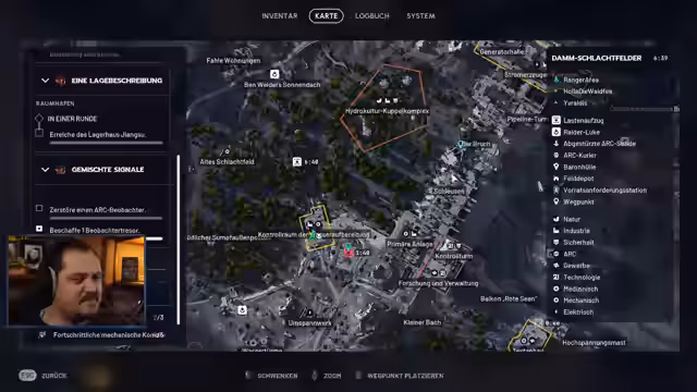 03:19:09Die Spieler tauschen humorvolle Bemerkungen aus, während sie sich auf die nächste Runde vorbereiten. Es wird über die Möglichkeit gesprochen, nachts Kuchen zu backen oder Kinder im Falle eines dritten Weltkriegs zu alarmieren. Die Anwesenheit einer Wespe, einer Drohne, wird bemerkt, und es wird gesungen, um die Stimmung aufzulockern. Die Spieler diskutieren über ihre Erfolge und Misserfolge in früheren Runden und wie sie diese als "psychologische Erpressung" nutzen können. Die Karte "Roter See" wird entdeckt, und die Spieler müssen Arc-Gegner zerstören sowie Kabel und Akkus besorgen. Die Begegnung mit Sentinels und Springern erfordert strategisches Vorgehen und Teamwork, um die Gegner zu besiegen und die Quests zu erfüllen.