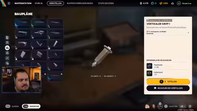 04:20:14Die Spieler geraten in weitere Kämpfe, unter anderem gegen einen Geschützturm, eine Wespe und einen Springer. Sie diskutieren, ob sie den Springer bekämpfen sollen, entscheiden sich aber dagegen, da sie keine Granaten dabei haben. Sie nutzen eine Tür als Deckung, um den Springer zu umgehen. Ein Spieler findet Springerzellen und Impulseinheiten, die für Werkbänke benötigt werden. Die Gruppe bewegt sich zum Bahnhof, wo ein Epic gefunden wird, ein Bauplan für mittlere Waffenteile und ein magnetisierter Beschleuniger. Ein Spieler findet und sabotiert einen Geheimvorrat, wodurch eine Quest abgeschlossen wird. Die Gruppe ist überladen und sucht nach einem Weg, die Station zu verlassen. Sie bemerken, dass eine Minimap das Spiel zu einfach machen würde, schätzen aber die Anzeige der eigenen Position auf der Karte.