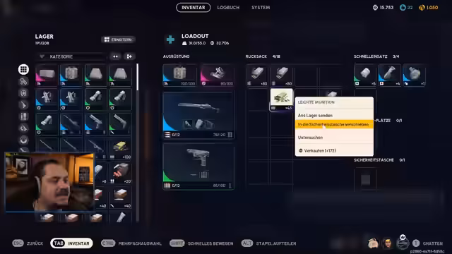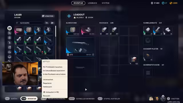 04:09:11Ein Spieler hat Probleme mit dem vollen Rucksack und fehlenden Münzen zur Erweiterung. Es wird erklärt, dass Gegenstände mit einem Diamant-Icon verkauft werden können, um schnell Geld zu verdienen. Nach dem Verkauf einiger Gegenstände kann der Rucksack erweitert werden. Die Spieler diskutieren über die Kosten weiterer Lagerplätze und die besten Orte zum Grinden von Geld, wie zum Beispiel Wohnhäuser in der Feuerbegrabenen Stadt. Ein Spieler hat bereits ein Epic aus dem Bahnhof geholt und zwei Waffenkisten gefunden. Die Gruppe bereitet sich auf eine weitere Runde vor, wobei ein Spieler noch craften muss. Es wird betont, dass man auch 'nackt' in die Runde gehen kann, da man nichts verliert und nur gewinnen kann.