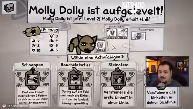 03:34:17Der Stream beginnt mit ersten Eindrücken zu Mewgenics, einem neuen Spiel, in dem Katzen im Mittelpunkt stehen. Die Spielmechanik wird als rundenbasiertes Taktikspiel vorgestellt, bei dem Katzen mit Grundangriffen, Fähigkeiten und Mana agieren. Der Streamer testet das Steuerungsgefühl und erklärt grundlegende Konzepte wie die Zugreihenfolge, Bewegung, Angriffe und die Wiederaufladung von Mana. Es wird auf die passive Fähigkeit der Katzen hingewiesen, die nach einem besiegten Gegner einen zufälligen Attributsbonus erhalten.
