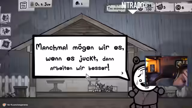 04:17:03Das Spiel wird als komplex und fesselnd beschrieben, das hunderte Stunden Spielspaß verspricht. Ein zentrales Element ist das Verletzungssystem, bei dem Katzen durch Schaden ohnmächtig werden und dauerhafte Attributsverluste erleiden. Nachts im Haus ereignen sich zufällige Dinge, wie Katzen, die miteinander schlafen. Ein Charakter namens Frank gibt wertvolle Tipps zu Mechaniken wie der Vererbung von Attributen über die Stimulation und dem Reiz des Hauses für die Anwerbung von Streunern.