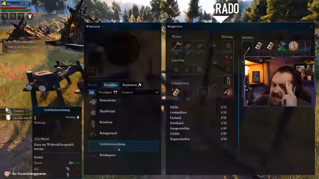 01:08:00Zu Beginn des Abschnitts wird der Bau von Riemen als entscheidend für die Herstellung von Werkzeugen wie Axt und Spitzhacke identifiziert. Dafür werden Materialien wie Fell und Seile benötigt. Der Streamer verbringt erhebliche Zeit mit der Suche nach Rezepten und notwendigen Ressourcen, wie Rohstein, um Gebäude wie das Trapperlager und das Räuchergestell zu erstellen. Er betont die Notwendigkeit, Ressourcen wie Seil, Stroh und Leinen aufzufüllen, um effizient produzieren zu können.