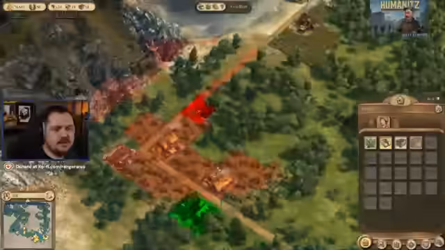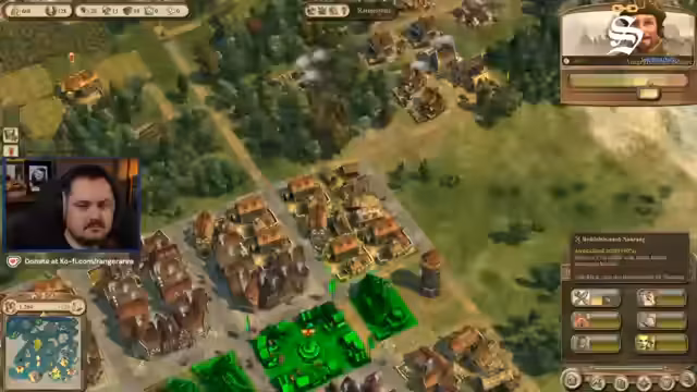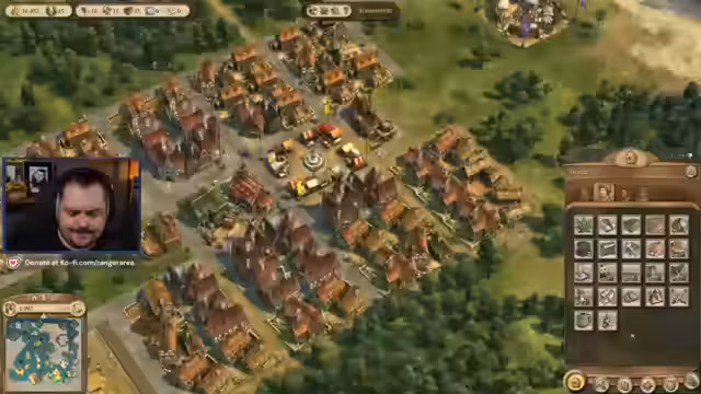 00:43:10Nach der Platzierung der ersten Holzfällerhütte und eines Dorfes beginnt der Aufbau der Grundinfrastruktur. Der Streamer betont, dass man für das Spiel keine Straßen um jedes Haus bauen muss, findet dies aber ästhetisch unschön. Er startet den Bau einer Kapelle und einer Kneipe, um die Bedürfnisse der Bevölkerung zu erfüllen und den Aufstieg der Bürger zu ermöglichen.