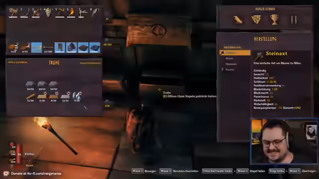 01:18:04Nachdem das Essen fertig ist, konzentriert sich der Streamer auf das Craften und das Auffrischen seiner Vorräte. Er stellt fest, dass es keine großen Neuerungen im Crafting-Bereich gibt und sich gefragt, ob das Spiel schon durchgespielt ist. Er erwähnt sein Interesse an Survival-Spielen und seine Vorlieben für bestimmte Genres. Er erkundet die Umgebung weiter, sammelt Ressourcen wie Stein und Kohle und stellt fest, dass Valheim fesselnd ist, trotz gelegentlicher Schwierigkeiten mit der Steuerung und der Ebene. Er beschließt, seinen Campingplatz zu organisieren und plant weitere Entdeckungen in der Welt.