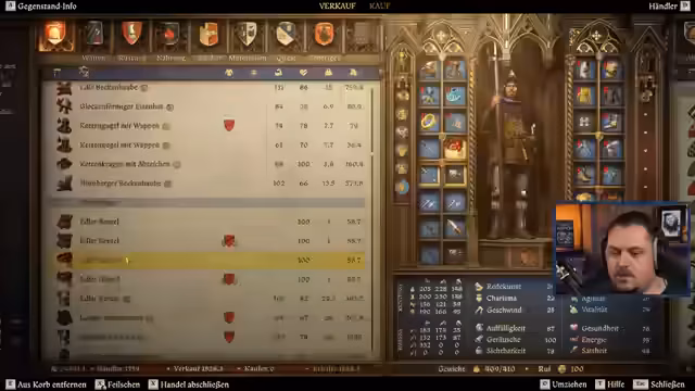 06:08:30Der Streamer setzt seine Kingdom Come Deliverance Session fort und erkundet die Quest rund um die verlassene Schmiede. Er spricht mit verschiedenen Charakteren, darunter Magdalena, die Witwe des Schmieds Skoda, und Meister Buschek, um die Möglichkeit einer Übernahme der Schmiede zu prüfen. Dabei muss er verschiedene Aufgaben erfüllen, um der Schmiedegilde beizutreten. Der Streamer betont die Qualität und den Wiederspielwert von Kingdom Come Deliverance und kündigt ein DLC-Giveaway an, bei dem die Zuschauer die Chance haben, das DLC zu gewinnen, wenn sie dem Kanal folgen und '!DLC' in den Chat schreiben. Er empfiehlt, mit Teil 1 des Spiels zu beginnen, da Teil 2 viele Quality-of-Life-Verbesserungen bietet, die im ersten Teil fehlen. Der Streamer demonstriert den Handel mit NPCs, um seine Finanzen aufzubessern, bevor er sich der Schmiede-Quest widmet.