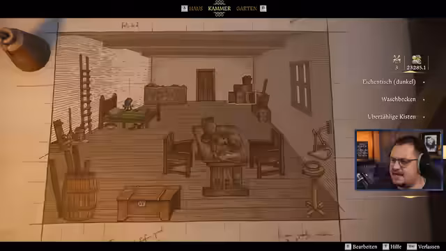 07:09:21Nach der erfolgreichen Renovierung erhält Heinrich seine ersten Aufträge. Er schmiedet eine Axt für Magdalena und ein selbstgebautes Jagdschwert. Magdalena übernimmt die Verwaltung und den Verkauf der hergestellten Gegenstände. Eine praktische Neuerung ist die Verkaufstruhe, in der der Streamer Waffen und Materialien lagern kann, die von Magdalena automatisch verkauft werden.