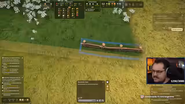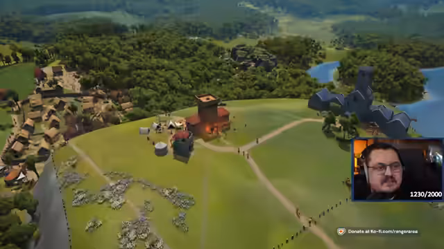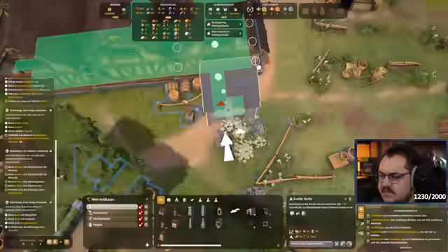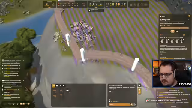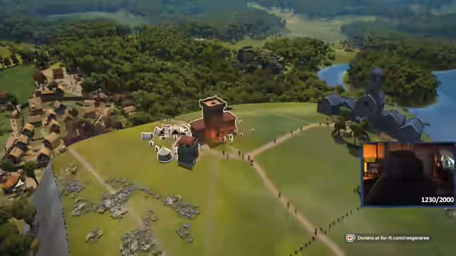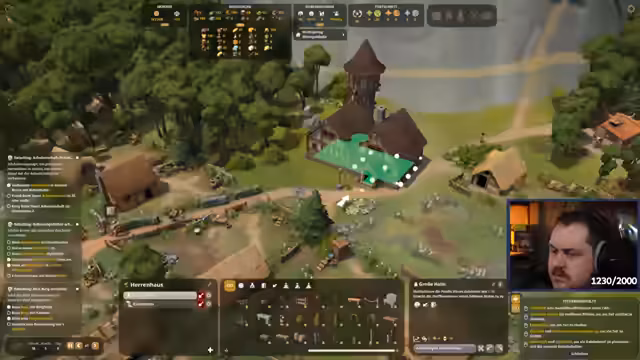 02:35:03Nach einem Rechnerwechsel und einer Neupositionierung der Kaserne wird mit dem Bau der Burg fortgesetzt. Der Streamer erkennt an, dass seine Dorfbewohner manchmal verschwinden, was das Management der Siedlung erschwert. Es werden Bauobjekte wie die Kapelle priorisiert und Pläne für die Gestaltung des Burgareals, wie den Bau eines Glockenturms und eines großen Tores, erörtert.