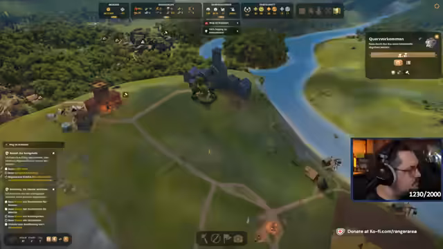 02:32:59Der Stream beginnt mit einem Hinweis auf Grafikprobleme und gelegentliche Abstürze im Spiel. Der Streamer erwähnt, dass er einen Rechnerwechsel vornehmen muss, da das System zu Beginn des Streams zweimal abgestürzt ist. Während des Gesprächs wird die Kaserne als nächstes Bauziel für das Königreich identifiziert und gesucht, deren Standort zunächst unklar ist.