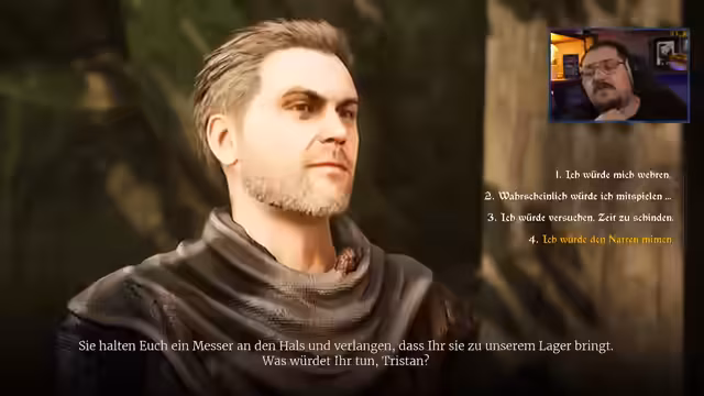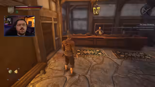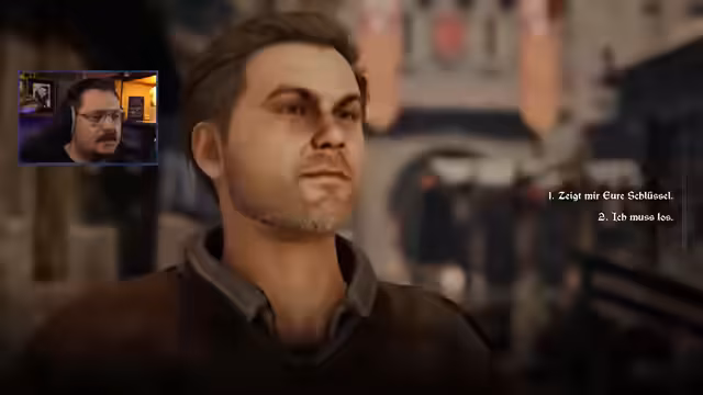 02:01:01Die Spieler interagieren mit verschiedenen Charakteren und erhalten Aufgaben. Es wird Wert auf Respektvolles Verhalten gegenüber stotternden Personen gelegt. Die Vertonung der Dialoge wird als sehr gut empfunden, mit schönen Akzenten und Dialekten. Es gibt die Möglichkeit, Gegenstände zu sammeln, aber nicht alle Objekte sind interaktiv. Eine Truhe erfordert einen Schlüssel, der gefunden wird. Die Spieler befinden sich noch im Prolog des Spiels, der als cinematische Tutorial-Phase dient. Eine Aufgabe besteht darin, Weinbrand zu finden und abzugeben, wobei die Spieler entscheiden, wie viel sie behalten. Die Attribute und Fertigkeiten des Charakters können verbessert werden, und es gibt erste Entscheidungen, die Stärke oder andere Eigenschaften beeinflussen.