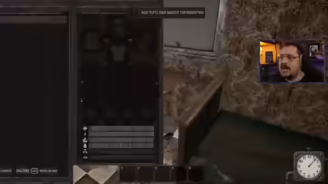 00:59:12Nachdem eine Emission angekündigt wurde, kehrt der Streamer in seinen Bunker zurück, um seine gesammelten Ressourcen zu verstauen. Er versucht, eine Holzkiste zu bauen, scheitert jedoch mangels Holz und Schrott. Die Erkenntnis, dass der äußere Bereich des Bunkers nicht zurückgesetzt wird, motiviert ihn, dort einen Grill zu platzieren. Er entdeckt die Bau- und Herstellungsmechaniken des Spiels, darunter eine erweiterte Werkbank und einen Zwergengenerator. Die Suche nach einem Rucksack erweist sich als schwierig, aber er findet eine Gasmaske und eine Panzerplatte. Während seiner weiteren Erkundung stößt er auf Anomalien, die an 'Stalker' erinnern, und sammelt weitere Gegenstände wie Benzin. Er versucht, den Benzgenerator anzuschließen, um Strom zu erzeugen, und richtet einen Essensschrank ein. Der Streamer experimentiert mit den Spielmechaniken und versucht, seine Basis zu optimieren, während er die Gefahren der Außenwelt meistert.