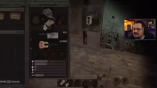 01:16:43Nach einem Bombenangriff stellen die Spieler fest, dass ihre gesamte Ausrüstung, einschließlich Polizeimütze und Gitarre, verloren gegangen ist. Dies führt zu großer Trauer und dem neuen Ziel, eine Gitarre zu finden. Die Welt des Spiels setzt sich in regelmäßigen Abständen zurück, was bedeutet, dass verlorene Gegenstände nicht wiedergefunden werden können. Das Abbauen von Holz scheint nicht möglich zu sein, stattdessen müssen Holzressourcen gefunden werden. Die Spieler haben Schwierigkeiten, Loot zu identifizieren und die Soundabmischung des Spiels wird als störend empfunden. Das Spiel wird als Mischung aus Stalker, Project Zomboid (wegen Survival und Basenbau) und Lethal Company beschrieben.