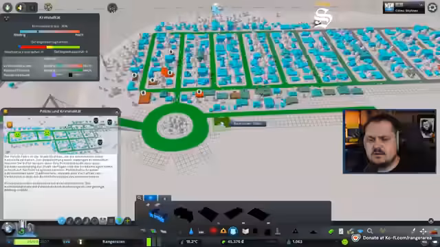 01:11:23Ranger entwickelt Marketing-Ideen für Wohngebiete im Zentrum des Kreisverkehrs, das er als 'Ihre Oase der Entspannung' bezeichnet. Er verspricht den Bewohnern 'allseitig gute Verkehrsanbindung' und eine 'Wohnung mit Rundumsicht'. Gleichzeitig versucht er, die Finanzen der Stadt im Blick zu behalten und plant einen Kredit aufzunehmen, um das Wachstum der Stadt voranzutreiben.