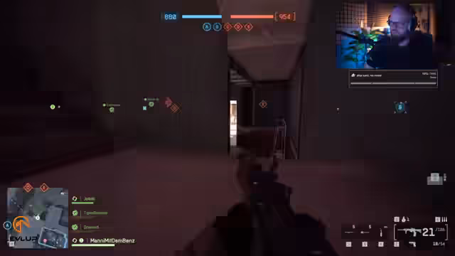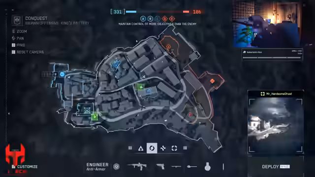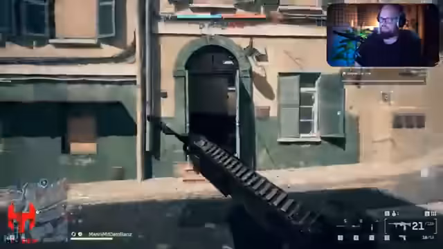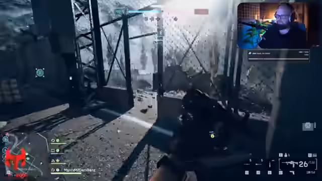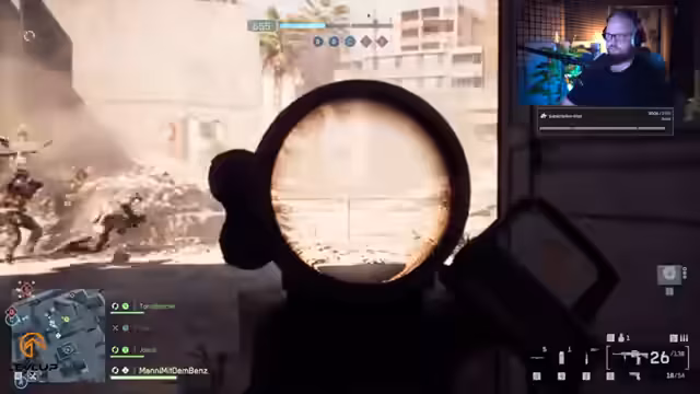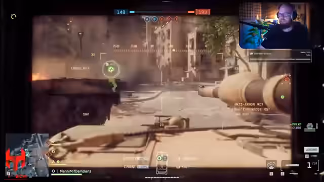00:14:54Nach dem Einblenden der Keys und einer kurzen Pause beginnt das Gameplay im Modus King of the Hill. Der Streamer testet zunächst den Infanterie-Modus und ist von der direkten Action, aber auch von den Schwächen wie der Munitionslimitierung und der zufälligen Time-to-Kill überwältigt. Wechselt er zu Conquest, zeigt er sich begeistert vom Gameplay, insbesondere vom fahrzeugebundenen Teil. Er lobt das starke Gefühl von Panzergefechten, die ein durchdachtes Reparier-System und die allgemeine Zerstörung, die für Battlefield-Momenten sorgt.