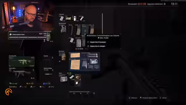 00:02:00Der Streamer beginnt den Raid mit 8,5 Millionen Köhen und ausrüstet sich mit verschiedenen Waffen und Ausrüstungsgegenständen. Er erwähnt die Waffenwahl, Munitionstypen und den Wert der Gegenstände. Der Streamer interagiert mit anderen Spielern und erwähnt den Wert des Inventars während des Spiels.