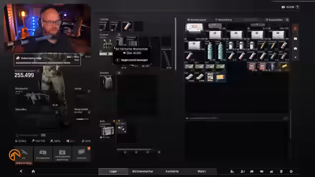00:00:40Der Stream beginnt mit dem Kanal 'ranzratte' und dem Titel 'DROPS tember Bait-Titel !hi-tech Socials: @Ranzratte'. Streamer spielt Arena Breakout Infinite und erwähnt, dass Joiki und Hörni ebenfalls mit spielen. Es werden Ausrüstungsgegenstände wie eine Vector, Weste, Rucksack und Munition besprochen. Der Streamer bereitet sich auf den Raid vor, rüstet sich aus und erwähnt technische Aspekte wie Fenstervollbild und Soundeinstellungen.