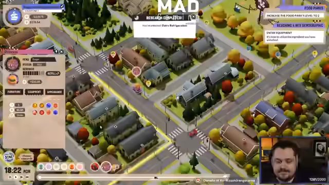 01:16:04Die Einrichtung des ersten Food-Trucks beginnt mit der Verbindung des Pattys an den Grill und zum Service-Counter. Der Streamer kritisiert die einfache Einrichtung, die zu einem Produkt führt, das nur aus einem aufgeschnittenen Brötchen mit einer Frikadelle besteht. Es wird festgestellt, dass dies nicht ausreicht, und ein zweiter, teurerer Bäckerwagen wird hinzugefügt. Währenddessen werden Einschränkungen wie der fehlende Drehspiezel für Gyros bemängelt, um die Menüvielfalt zu erweitern.