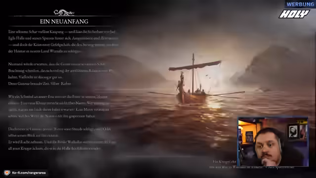 04:13:25Nach dem erfolgreichen Tutorial geht es in die Erkundungsphase. Der Streamer bewegt sich mit seinen Charakteren durch die Landschaft, sammelt Heilgegenstände wie Beeren und findet Leichen zum Plündern. Die Story schreitet voran, indem er seine Flucht aus der zerstörten Heimat fortsetzt und zum Langhaus seines Onkels Jarl Egil reist, um dort neue Aufgaben zu erhalten.