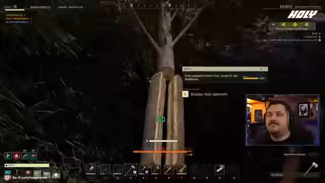 03:12:49Der Streamer beginnt mit dem Farmen und Bauen im Spiel Icarus, nachdem er endlich einen Wassertruck erhalten hat. Er stellt fest, dass ihm Holzstock-Eisennägel fehlen und muss daher welche herstellen, um eine Eisenschaufel zu bauen und schneller zu konstruieren. Anschließend findet er eine Armbrust und plant, Wassertrog für seine Haustiere herzustellen. Bei der Versorgung des Tiers zeigt sich der Streamer sichtlich erleichtert, dass es das Wasser aufgenommen hat.