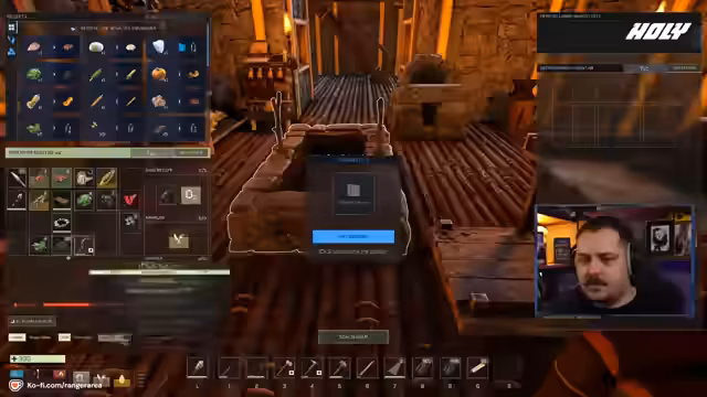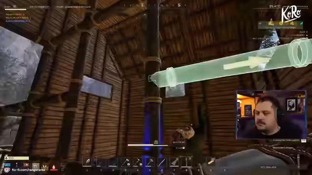 01:01:11Der Hauptauftrag ist der Bau einer neuen, größeren Scheune. Der Streamer stößt auf bauliche Herausforderungen, da die neuen Bauteile wie Holzhälften und -drittel nicht einfach kombiniert werden können. Während des Bauprozesses setzt ein Unwetter ein, das mit visuell eindrucksvollen Effekten wie umstürzenden Bäumen und Schäden an der Hüttenstruktur einhergeht.