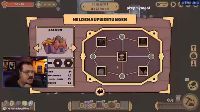 03:40:48Der Stream geht auf die Metaprogression des Spiels ein, bei der durch Erfolge wie das Töten von 1000 Gegnern neue Fähigkeiten und Gebäude freigeschaltet werden. Der Streamer findet eine starke Synergie mit dem Helden 'Bastion' und dessen Rückstoß-Mechanik. Die Konfiguration der Helden und Gebäude wird optimiert, um die combobasierten Effekte wie z.B. die Verschiebung von Gegnern zu maximieren.