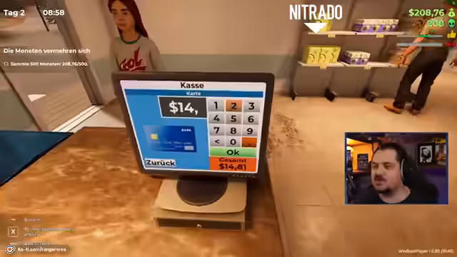 01:15:23Der Fokus verschiebt sich auf die wirtschaftlichen Aspekte des Spiels. Der Streamer versucht, seinen Laden zu betreiben, indem er Getränke wie Cola und Wasser in einem Kühlschrank anbietet und die Preise festlegt. Dabei kommt es zu Unstimmigkeiten, wie einem fehlenden Dollar oder dem Einpacken falscher Produkte. Ein wiederkehrendes Thema ist ein 'geheimes' Geschäftsmodell, bei dem er fiktive Mitarbeiter für 520 Euro anstellt, um so Steuern zu umgehen und sich selbst ein höheres Gehalt auszahlen zu lassen, was als witzigerRunning Gag dient.