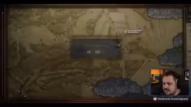 01:11:19Nachdem das Spiel gestartet ist und der Streamer die Kontrolle über seine Spielfigur übernimmt, beginnt er mit der eigentlichen Quest. Er plant, nach einer Schlägerei in der Dorfschenke schnell mit der Reise zum Schmied Radovan fortzufahren. Ziel ist es, einen Bericht beim Schmied zu erstatten, bevor eine weitere Aufgabe ansteht. Der Streamer wechselt das Reiseziel auf der Karte und startet die Bewegung des Charakters in Richtung des Dorfes.