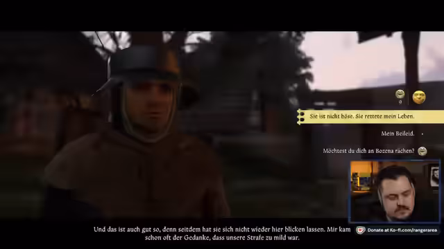 01:59:20Beim Vogt angekommen, muss der Streamer seinen Bericht über die Vorkommnisse mit dem Müller formulieren. Der Vogt fordert ihn auf, frei herauszusagen, und versichert Schutz für seine Leute. Gleichzeitig muss der Streamer strategisch entscheiden, ob er den Müller an den Vogt verrät, was zu dessen Bestrafung führen könnte, oder ob er die Information für sich behält. Die Entscheidung hat Auswirkungen auf den Charakter des Spielers und die weitere Handlung im Dorf.