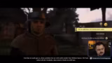 02:57:18Nach dem Kampf repariert der Streamer seine Ausrüstung in der Schmiede. Er unterhält sich über das Kampfsystem des Spiels, das er als realistisch und immersiv empfindet, da der Charakter nicht übermächtig ist. Anschließend reitet er weiter, um eine weitere Quest zu verfolgen, wobei er sein Pferd und dessen Moral im Auge behält. Er trifft erneut auf die Ritter, um die er sich gekümmert hat.