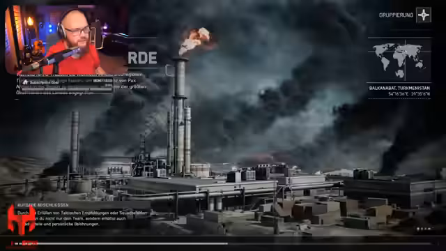 07:24:39Das Gameplay wird durch Teamaktionen dominiert. Der Streamer und sein Team konzentrieren sich darauf, einen Gebäudekomplex zu halten, indem sie mit einem Helikopter, Minen und RPGs verteidigen. Er kommuniziert intensiv mit seinem Team über die Position von Feinden und den Bedarf an Munition oder Medizinischen Packs. Es geht darum, strategische Punkte zu sichern, gegnerische Fahrzeuge auszuschalten und Spawnpunkte zu kontrollieren, was zu dynamischen und actionreichen Szenarien führt.