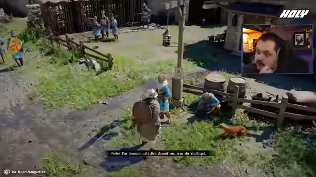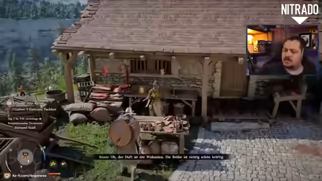 01:00:46Der Streamer interagiert mit verschiedenen Nicht-Spielercharakteren (NPCs), von einem alten Mann bis hin zu philosophischen Zwergen. Die Dialoge und die Vielfalt der NPC-Reaktionen werden als interessant beschrieben. Er kehrt zu seinem Camp zurück, wo er Vorräte und einen Regenerationspunkt vorfindet. Der Streamer resümiert bislang positive Eindrücke vom Spiel, vergleicht es stilistisch modernen Titeln wie dem Witcher und lobt die Sandbox-Elemente, auch wenn das RPG-Feeling noch nicht vollständig vorhanden scheint.