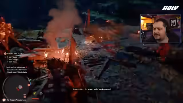 06:08:38Der Streamer äußert sich zum ersten Mal über die Story des Spiels und bezeichnet diese als relativ flach und als nicht den Hauptfokus des Spiels. Seine persönliche Zufriedenigkeit resultiert weniger aus der Erzählung, sondern vielmehr aus der Freude am Erkunden der gigantischen Spielwelt und den darin enthaltenen Systemen. Er bemerkt zudem, dass die Welt an Zeldas Open-World-Design erinnert. Eine Nebenquest, bei der ein im Sumpf gefangener Mann befreit werden soll, wird begonnen, während eine Überraschung für die langjährigen Zuschauer angekündigt wird.