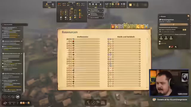 02:57:17Der Streamer konzentriert sich auf das Management der Bürger, indem er Einheimische zu Gemeinen befördert. Er beschäftigt sich mit der Produktion verschiedener Ressourcen, darunter Milch, Brot und Käse, und baut相应的设施 wie Molkereien, Backstuben und Kräutergärten. Er stellt fest, dass die Fleischproduktion ein Problem darstellt und plant, die Jagd zu intensivieren und eventuell Wildschweine zu importieren. Er kümmert sich auch um die Versorgung der Klosterbewohner mit entsprechenden Lebensmitteln.