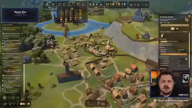 01:13:44Der Streamer konzentriert sich auf das City Builder Spiel, wobei er den Bau einer Zollburg auf einer kleinen Insel priorisiert. Die Community ist an der Entscheidung beteiligt, ob ein Herrenhaus oder eine Burg gebaut werden soll. Nach einer Umfrage entscheidet sich die Mehrheit für eine Burg. Der Streamer plant zudem den Bau befestigter Straßen und die Anordnung von Gebäuden wie einer Kelterei und einem Waldgebiet.