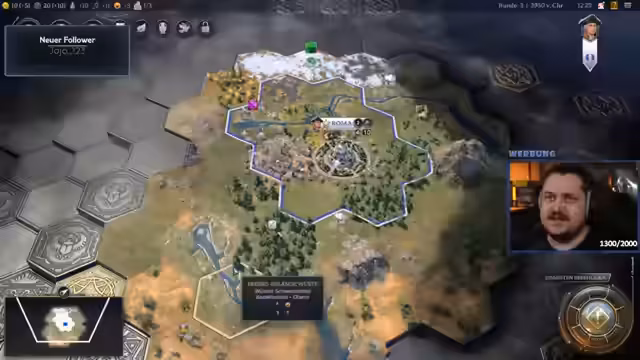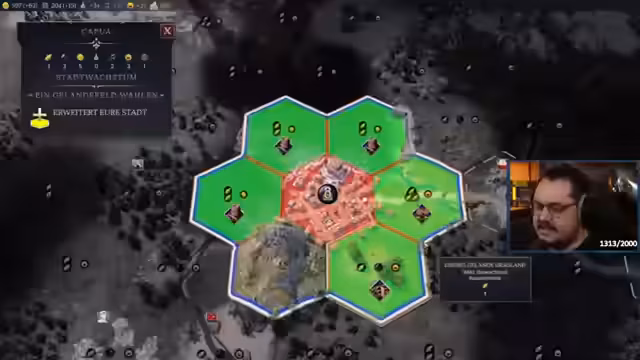 03:32:25Für das weitere Stadtwachstum plant der Streamer, Spezialisten einzusetzen, um gezielt Boni in Forschung und Kultur zu erhalten. Er priorisiert die Forschung und nutzt einen bereits vorhandenen Spezialisten, um den Fortschritt voranzutreiben. Zusätzlich erwägt er den Bau von Stadtmauern für mehr Verteidigung, findet jedoch, dass dies nicht die logischste nächste Aktion ist.