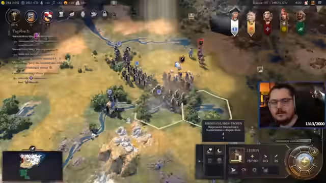 04:26:19Der Stream beginnt mit der Fortführung eines Civilization 7 Spiels, bei dem der Fokus auf der Optimierung einer römischen Armee liegt. Es werden die Einheiten Legionäre diskutiert und das Ziel, diese durch Bogenschützen zu ergänzen, um eine vollständige und schlagkräftige Truppe aufzustellen. Dabei wird der Prozess des Auflevelns der Einheiten und die strategische Planung des Angriffsverlaufs detailliert beschrieben, einschließlich der Verwaltung von Militärattributen und der Generierung von Gold.