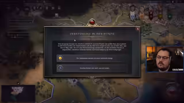 05:22:48Die Krise im Spiel eskaliert, was zu Revolten in den Siedlungen und zum Verlust einer Stadt an eine rivalisierende Zivilisation führt. Der Streamer reagiert frustriiert auf diese Entwicklungen und muss sich durch die Auswahl neuer, negativer Sozialpolitik und teure Reparaturen von Gebäuden die Situation wieder stabilisieren. Dies verdeutlicht die Herausforderungen der neuen Krisen-Mechanik.