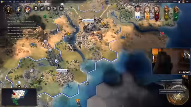 02:29:10Der Stream konzentriert sich auf die Entwicklung des römischen Reiches. Es wird eine neue Siedlung gegründet und die Forschung auf 'Schrift' und 'Bronzeverarbeitung' ausgerichtet. Entscheidungen über Gebäude, wie die Bibliotheka für Wissenschaftsboni und ein Weingut für zusätzliche Zufriedenheit, werden getroffen. Der Spieler erhält durch die Freundschaft mit einem Stadtstaat Suzeren-Status und wählt den Bonus der 'Stufenpyramide', die Wissenschaft und Zufriedenheit bringt. Der spielerische Fortschritt und die oft erwähnte Pech-Serie bei Zufallsereignissen sind wiederholt Thema.