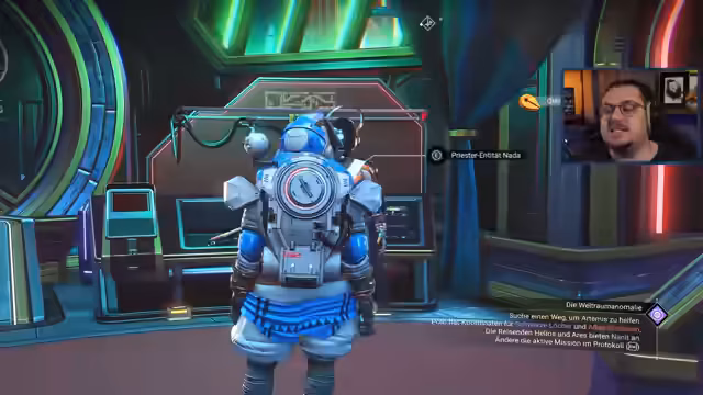 Der Spieler taucht in das neue No Man's Sky Update ein, baut Schiffe und erkundet Planeten. Missionen führen ihn zu Spezialisten und einer mysteriösen KI-Warnung vor galaktischer Zerstörung. Basenbau und Ressourcenbeschaffung sind zentral, während er sich mit Wächtern auseinandersetzt und die Hauptstory verfolgt. Ein roter Faden soll nicht verloren gehen, da das Spiel sonst überwältigend sein kann.